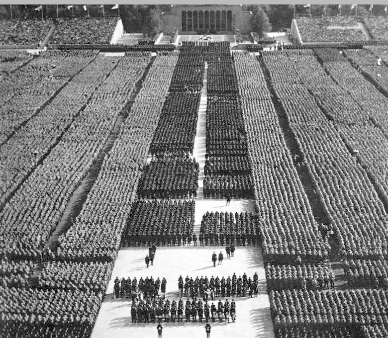 It’s a fascinating, but chilling, historical document, edited with precision. Marching soldiers are timed with endless military music. Rally spectators are herded into straight-edged patterns. This new, Nazi Germany is Organized.