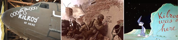 According to the website, America Comes Alive, the Kilroy phenomenon began with a munitions inspector in Massachusetts during WWII. When he learned his inspection records were being altered, he started writing “Kilroy was here” to make his inspection marks more difficult to erase. This phrase quickly became famous, and soon it was appearing on landmarks throughout Europe and the South Pacific.¹