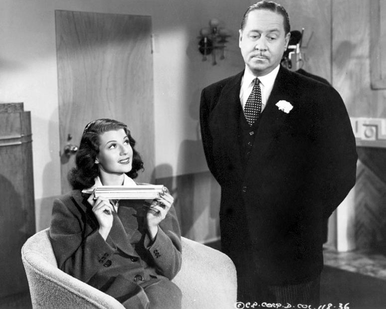 The first time Hayworth is given the bracelet is in Benchley’s office. It’s an extravagant gift, especially considering Benchley can’t remember her name, but she’ll have No Part of this. She slips the bracelet into the pocket of his overcoat as she leaves his office.
