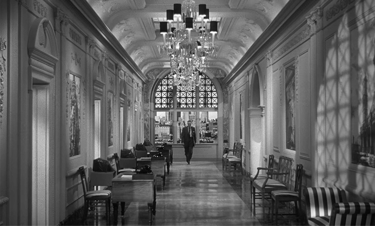 There are a few things that immediately strike you about this movie. First, it was filmed in New York and has a rather grim texture, like a crime drama. Second, when we first see the so-called “Executive Corridor” in the company where Fred works, we’re astounded by its grandeur. Because it resembles the Galerie des Glaces in the Palace of Versailles, we know this place is meant for a king.