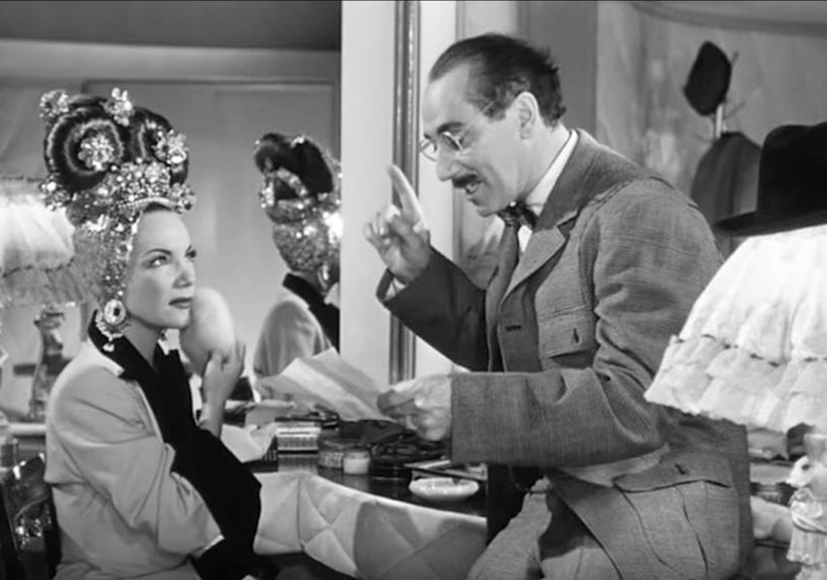 Groucho spends much of the movie flirting with the Copa Girls (the in-house chorus line), much to Miranda’s consternation: