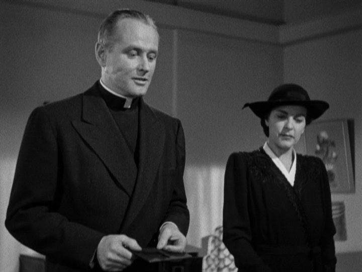 The problem, of course, is the Motion Picture Production Code; it could never allow such a scandalous portrayal of the clergy in 1946. So filmmakers have to quickly tell us nah, it’s not suicide, it’s murder, see? And those missionaries are imposters!