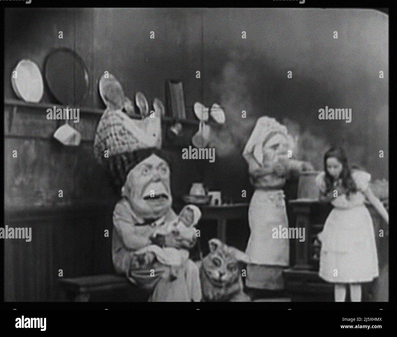 A title card at the start of the film, courtesy of restorers, says only half of this movie survives, and that the original included scenes from Carroll’s follow-up novel, Through the Looking Glass. Another title card says, “No copy of the original 1915 release is known to exist.”